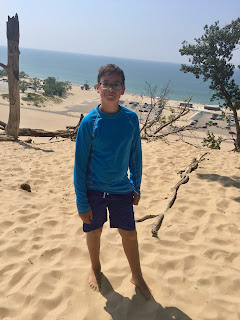 I have had Thursday afternoons off all summer long, and I've barely used them to do anything fun! They've been filled with doctor visits and errands and things that just need to get done. But today we finally busted free of that and met Erin, her mom, and the kids at Warren Dunes State Park in Michigan. We had a few challenges, though, notably that Max broke his toe in the most ridiculous way possible and now has extremely restricted activity. Ridiculous toe breaking, you say? Yes indeed. He was opening the door to his bedroom, not in a hurry or with excessive force or anything, and managed to get his toe stuck between the floor and the bottom of the door and hit it exactly right to cause a fracture on the growth plate. So now his summer has basically come to a screeching halt. Running and swimming and having fun have been replaced by visits to the orthopedic doctor and constant splinting. Boo! The doctor has also warned us that because of the break, his toe might grow at a different rate than the one on the other foot, meaning he might eventually need two different size shoes. I know they say that when one door closes, a window opens ... but what about when one door opens and breaks your toe?