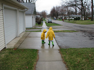 In the last couple of weeks, we've had some very rainy days. Yeah, I know, April showers and all that. But the boys have started to look forward to rainy days so they can pull on their rain gear and go out to jump in the puddles.