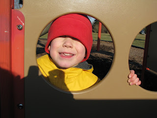 As promised, I took Max for a walk to the park yesterday before we picked Liam up from school, and I realized that it was most likely the first time Max had ever gone to the park by himself. I mean, of course I was there, but that's just not the same as having a big brother there to direct the play and keep things fun. I'm pretty sure the visit was a big disappointment to Max. He kept looking around as if to say, "Okay, I went down the slide. What am I supposed to do now?"